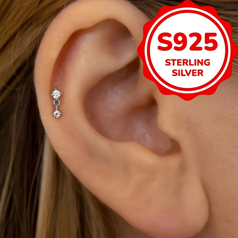 TEMU 2d Flat, 1pc 925 Sterling Silvery Dainty Stud...