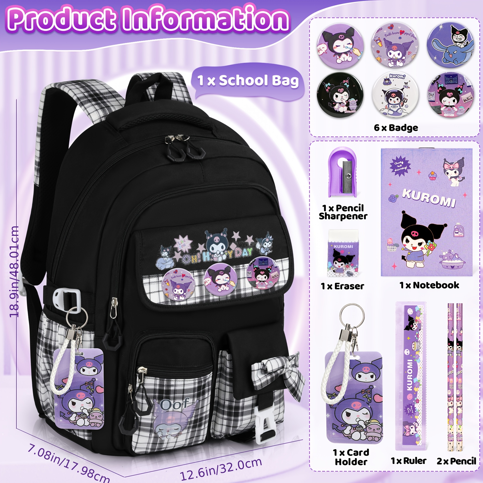 TEMU Kuromi Black Backpack Set With Dark Series Sc...