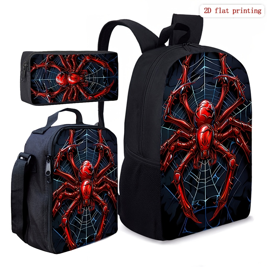 TEMU Cool Spider Web Print Backpack Three-piece Se...