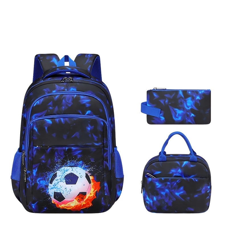 TEMU Three-piece Football Print Backpack Set, Comm...