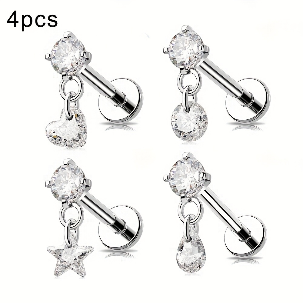 TEMU 4 Different Shapes 16g Female Spiral Stud Ear...