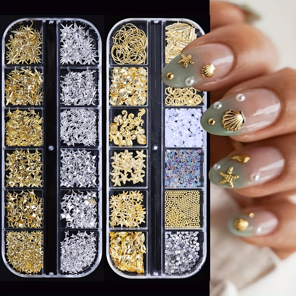 TEMU 2 Boxes 12 Grids Golden Alloy Sea 3d Nail Cha...