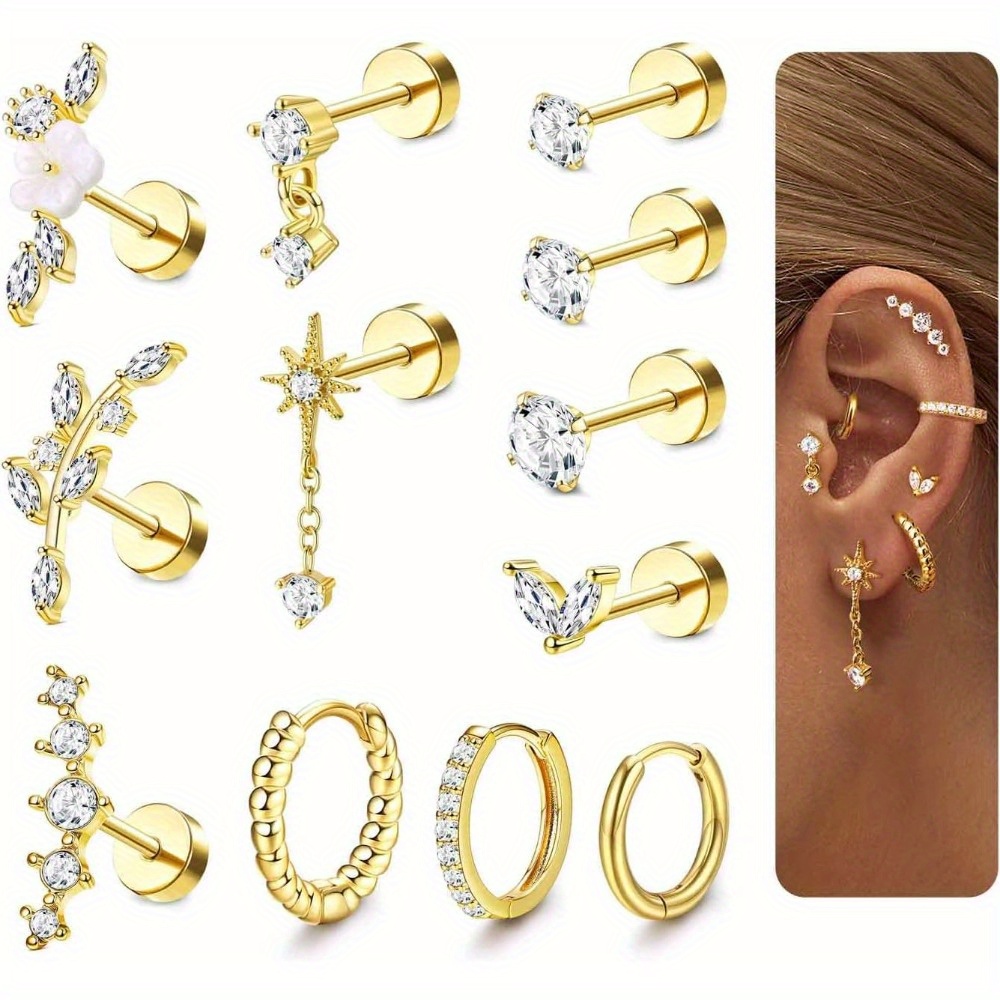 TEMU 12pcs Cartilage Earrings For Women Flat Back-...