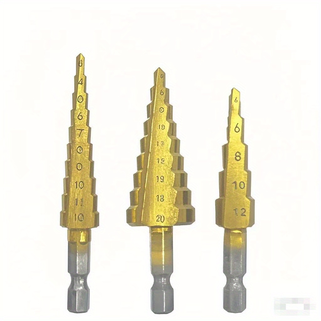 TEMU 3pcs Titanium-coated Hss Step Bits Set - Stee...