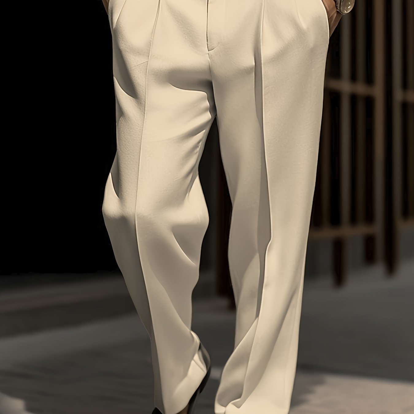 TEMU Men's High Waist Pleated Straight Leg Suit Pa...