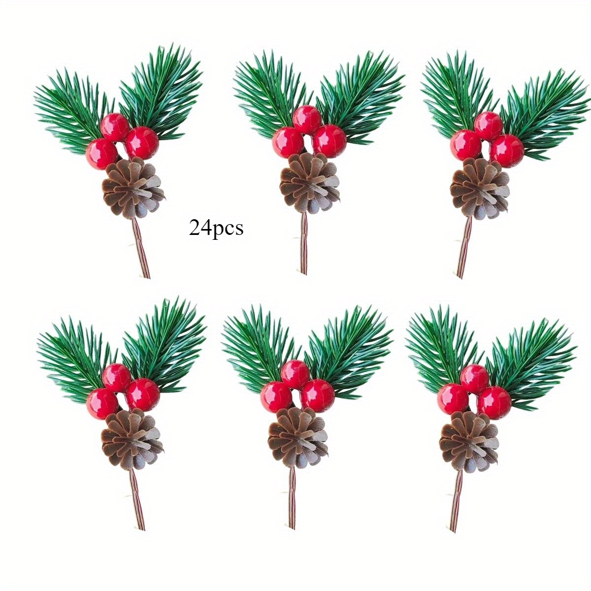 TEMU 24pcs Artificial Pine Cone Picks, Needle Stem...