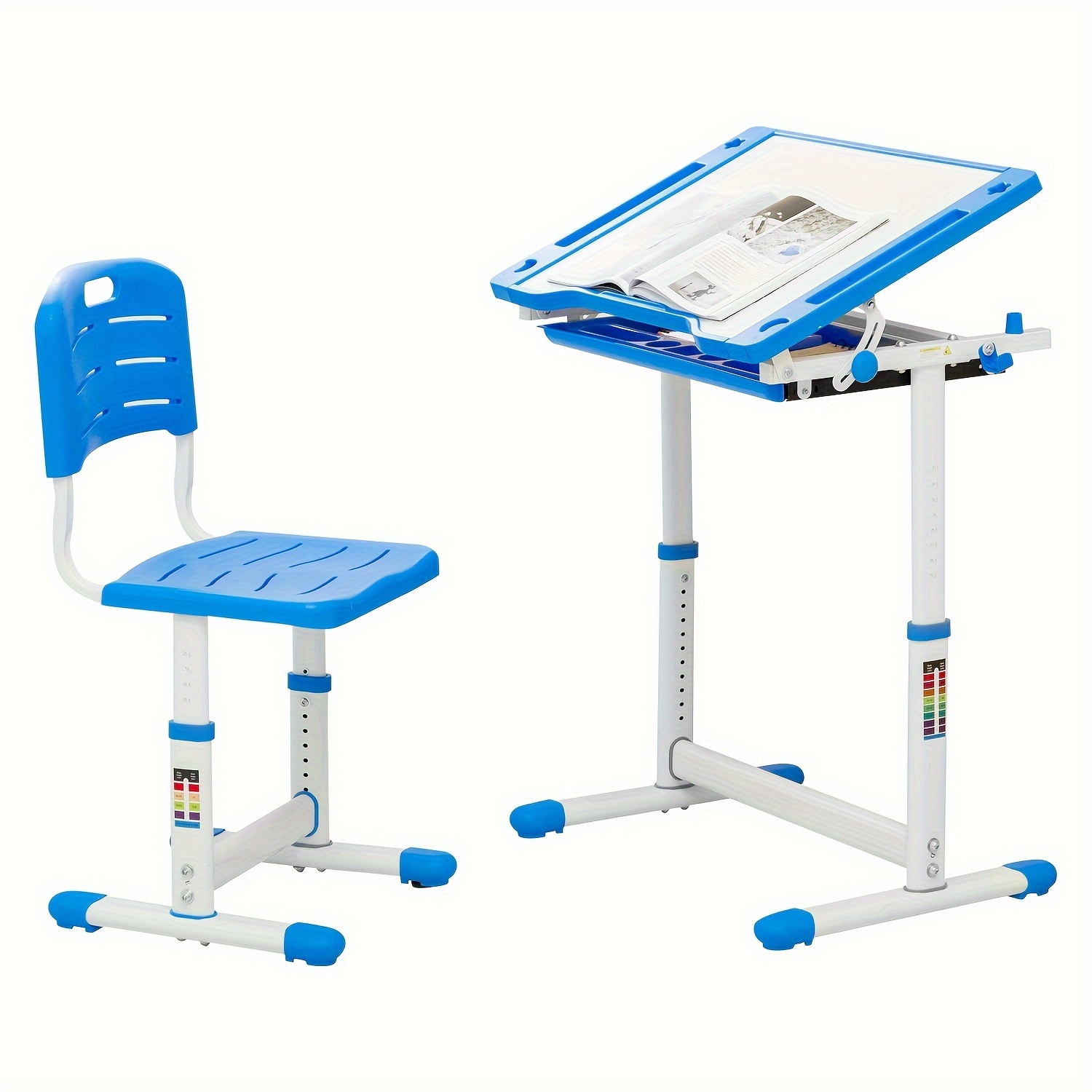 TEMU Qaba Kids Desk And Chair Set Height Adjustabl...