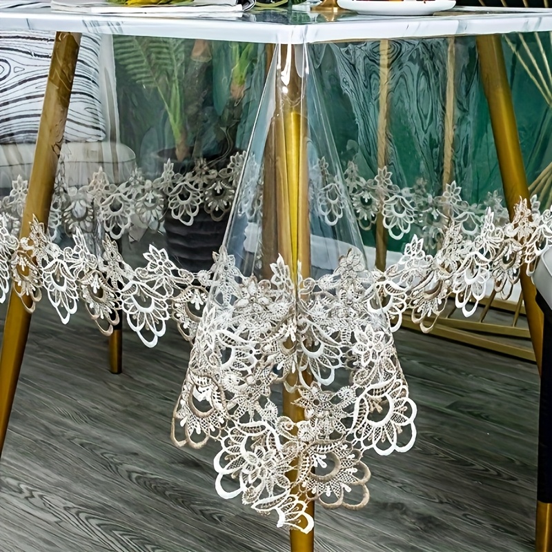 TEMU 1pc Elegant Pvc Tablecloth With Classic Lace ...