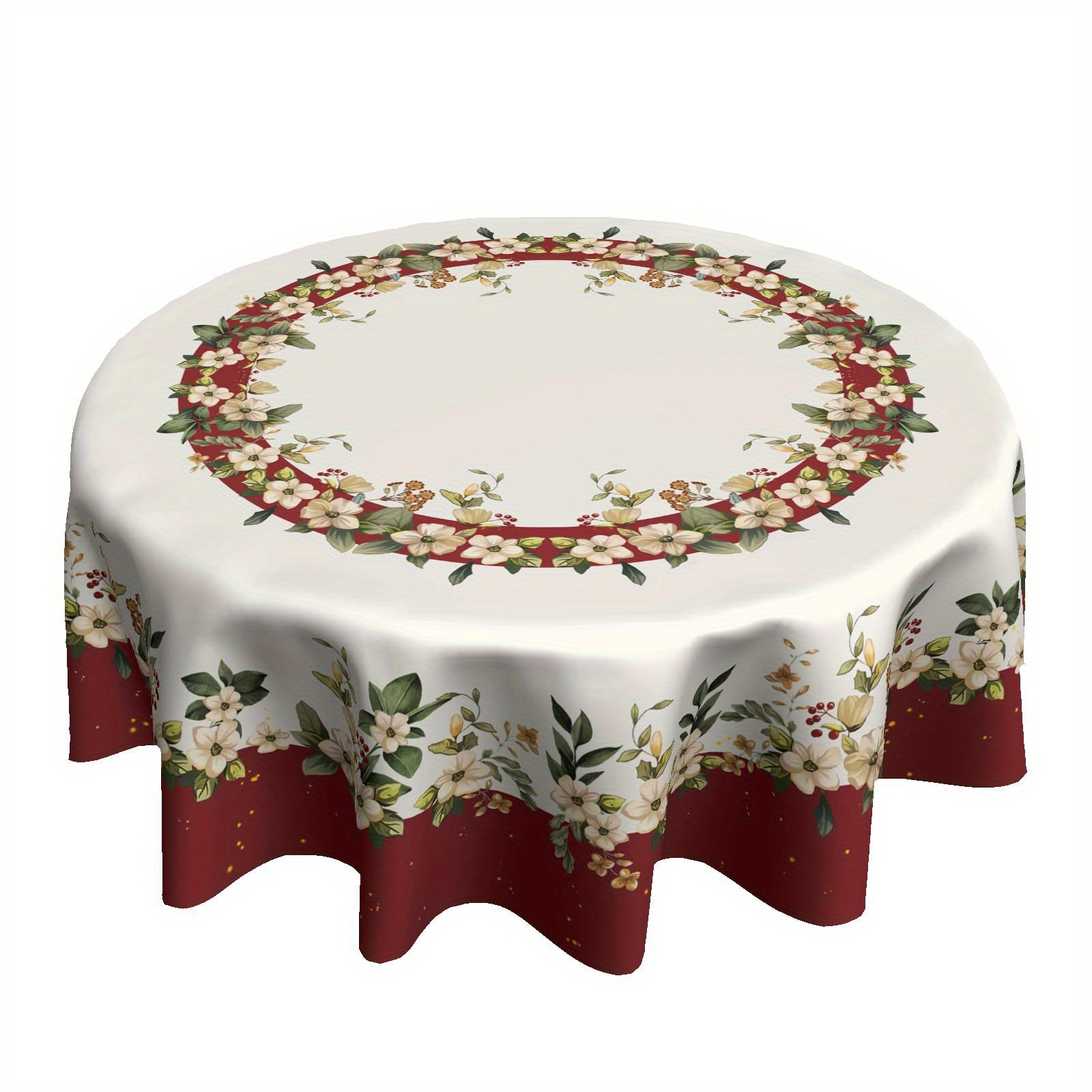 TEMU Merry Christmas Floral Tablecloth - Red , Rou...