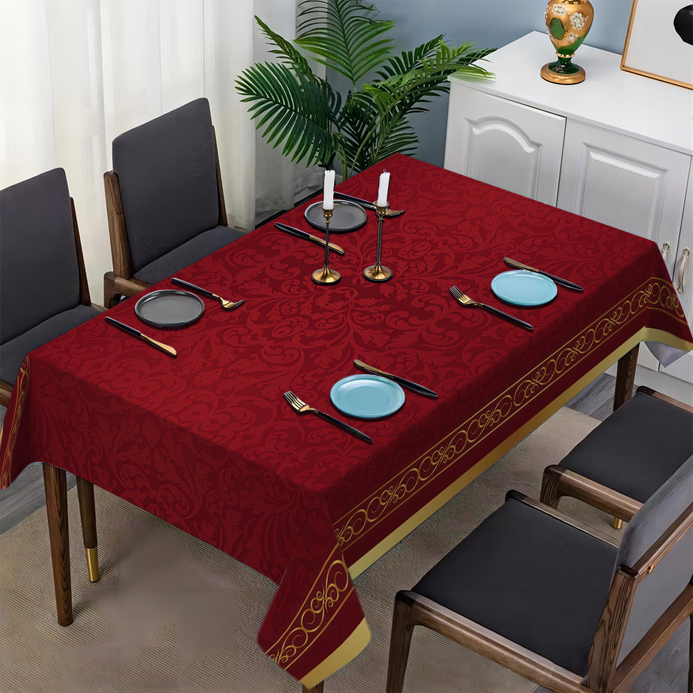 TEMU 1pc Elegant Red Floral Print Tablecloth, Rect...