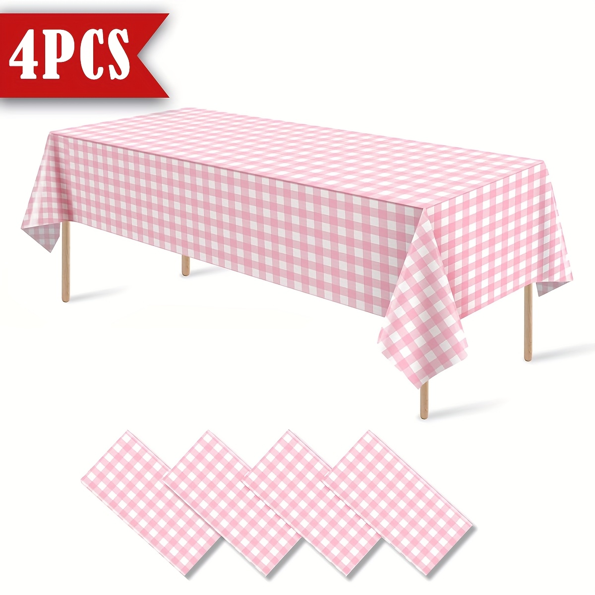 TEMU 4-pack Pink Gingham Tablecloth – Rectangular ...