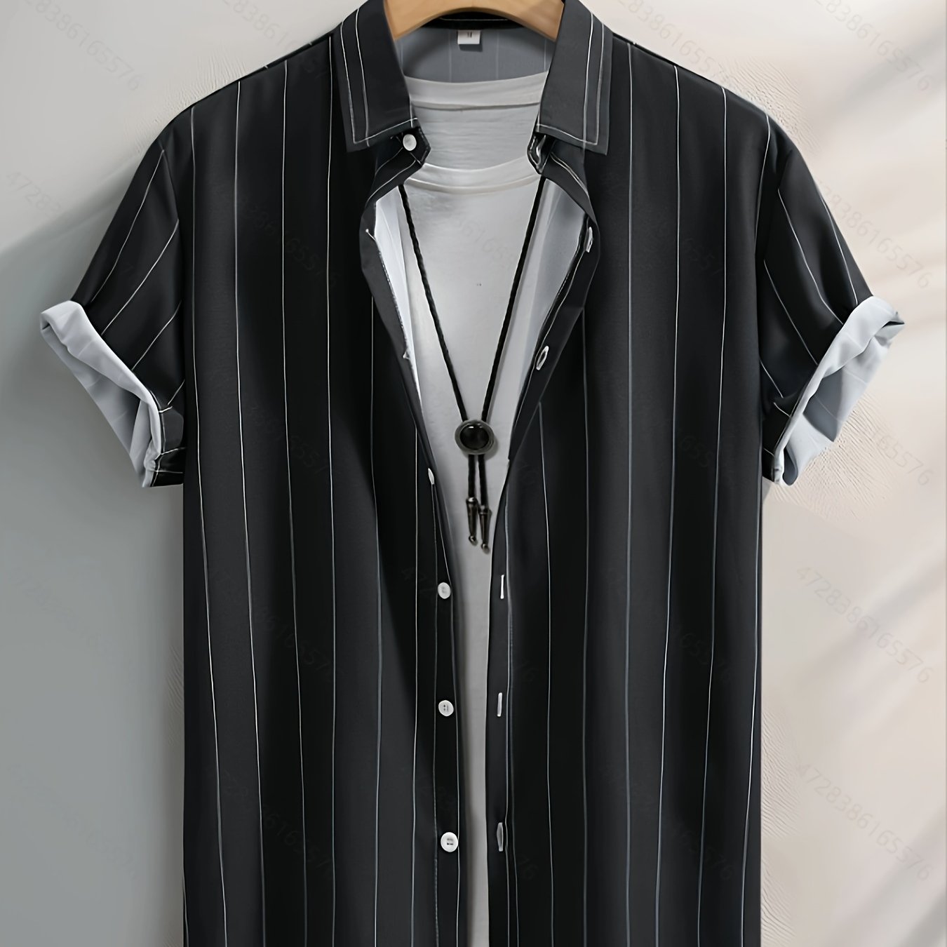 TEMU Men's Casual Summer Short Sleeve Striped Shir...