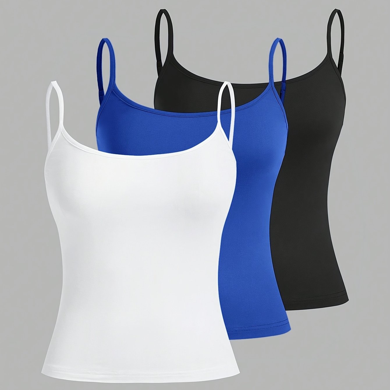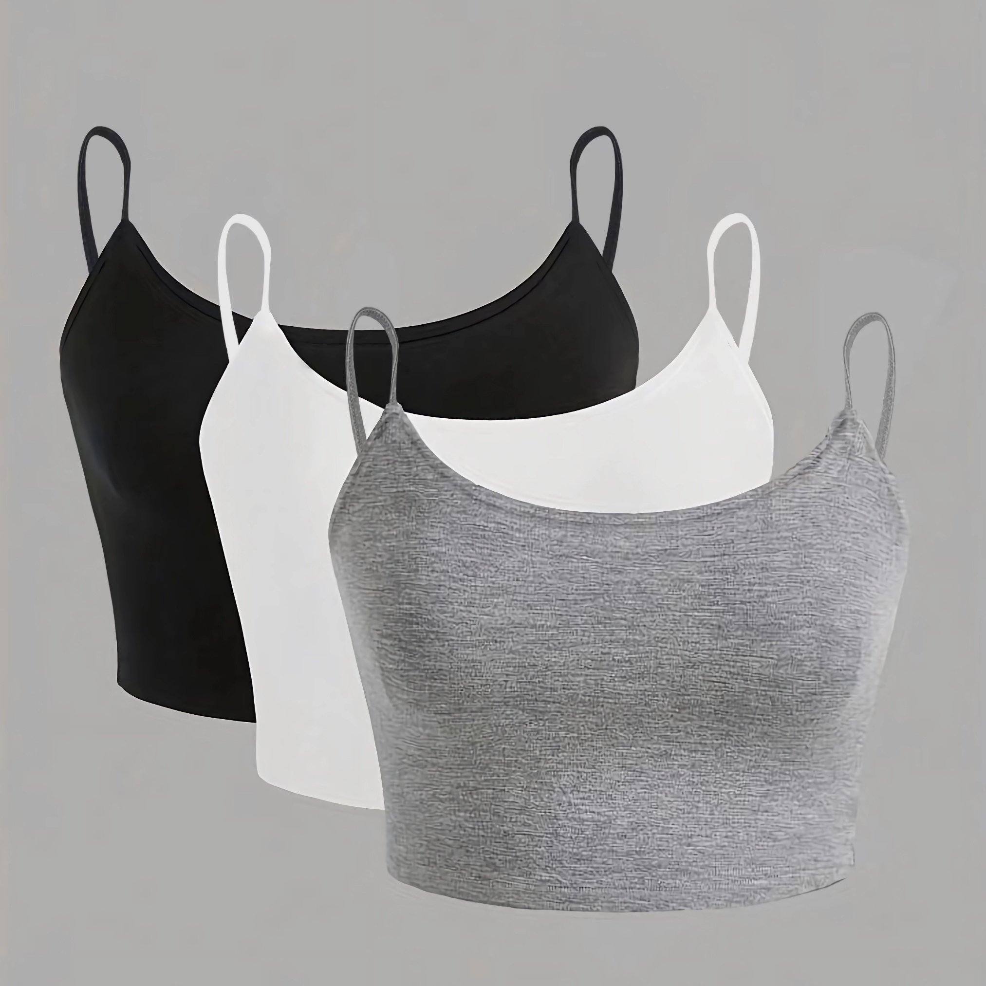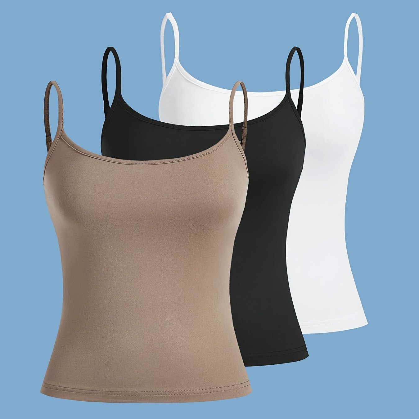 TEMU 3 Packs Solid Spaghetti Strap Top, Casual Col...