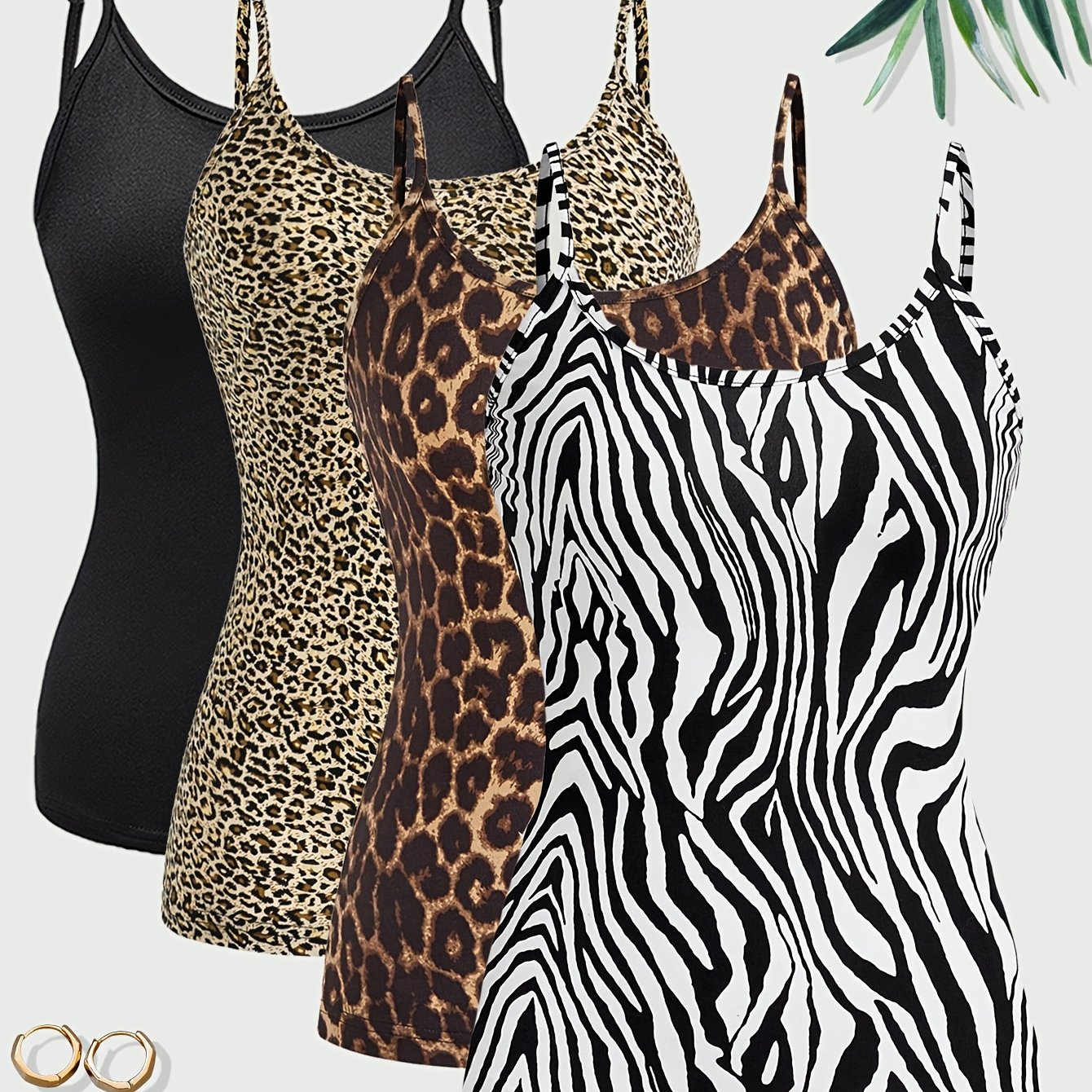 TEMU 4pcs Leopard Print Camisole Top Set For Women...
