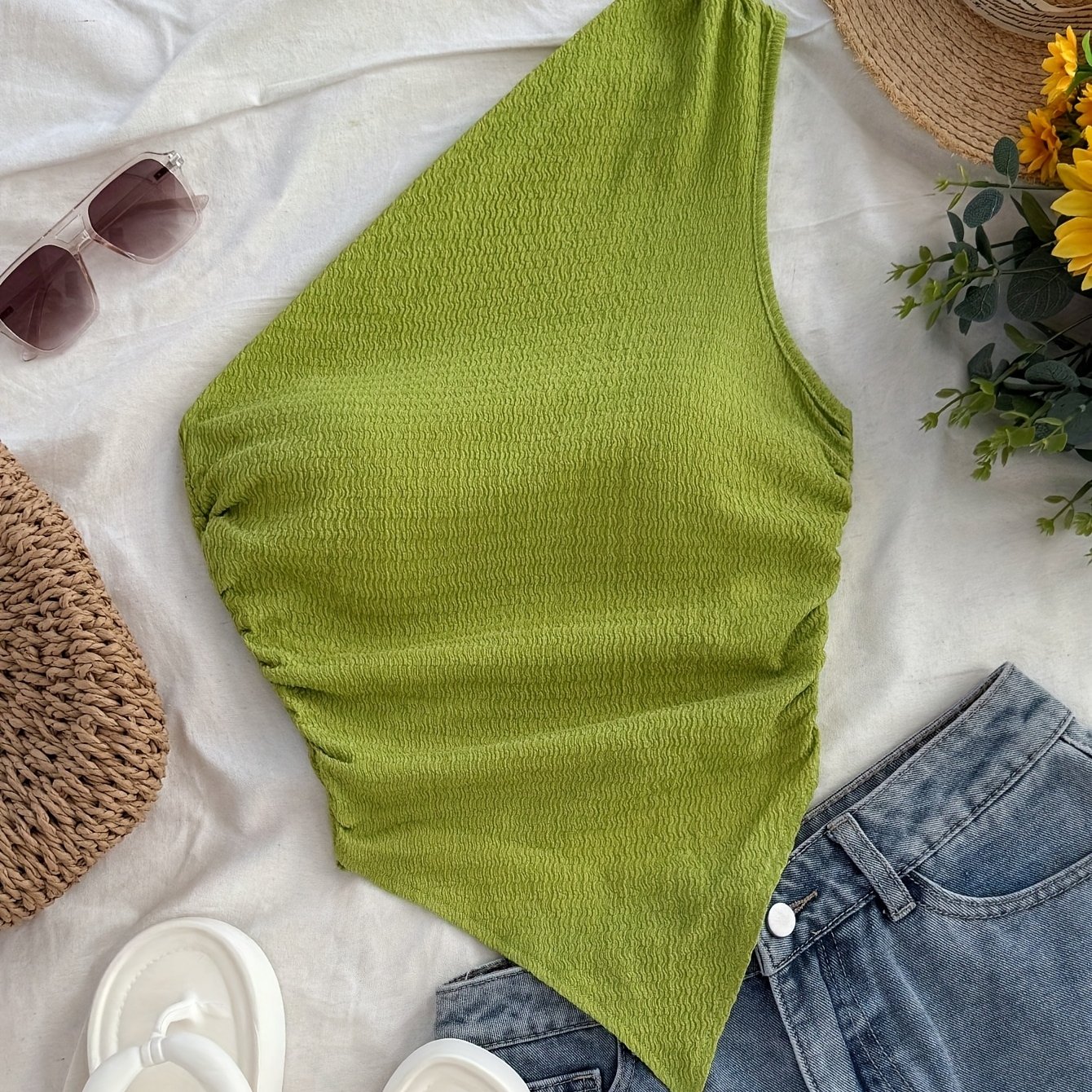 TEMU Women's Summer Asymmetrical Neckline Top - Pi...