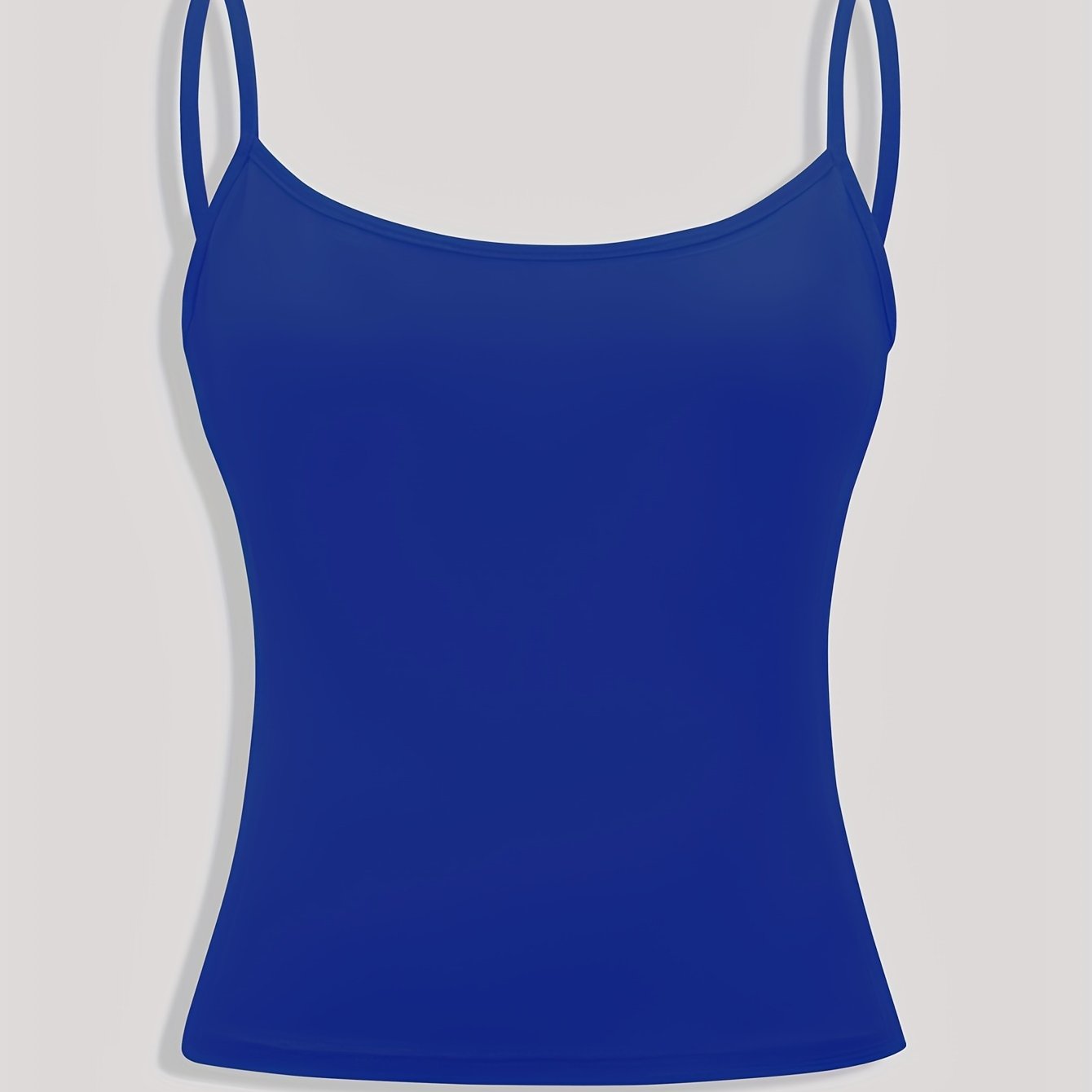 TEMU Solid Color Slim Cami Top, Sleeveless Neck St...