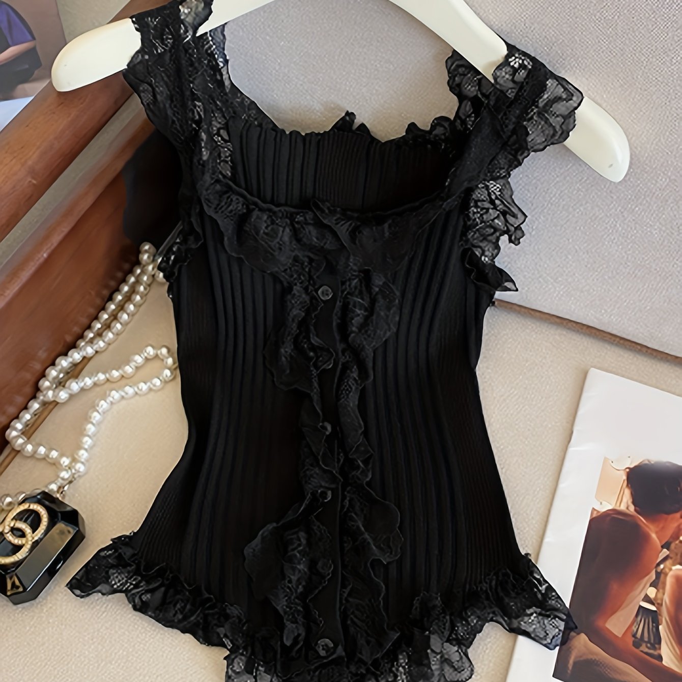 TEMU Women's Sleeveless Contrast Lace Cami Top - B...