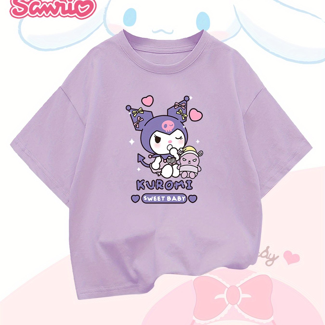 TEMU Kuromi Cartoon Print T-shirt For Girls, Soft ...