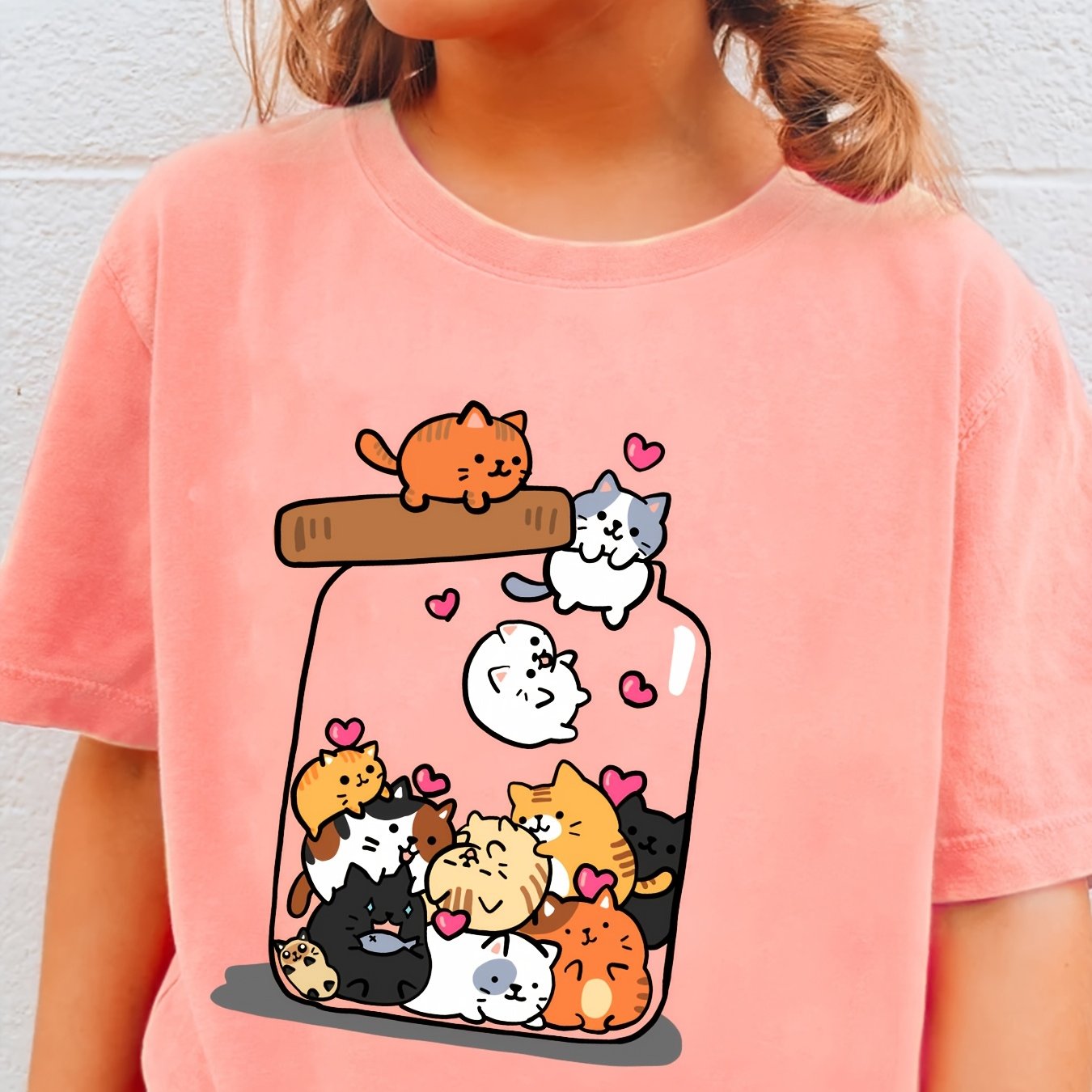 TEMU Cats In Glass Bottle Printed Girl's Summer Br...