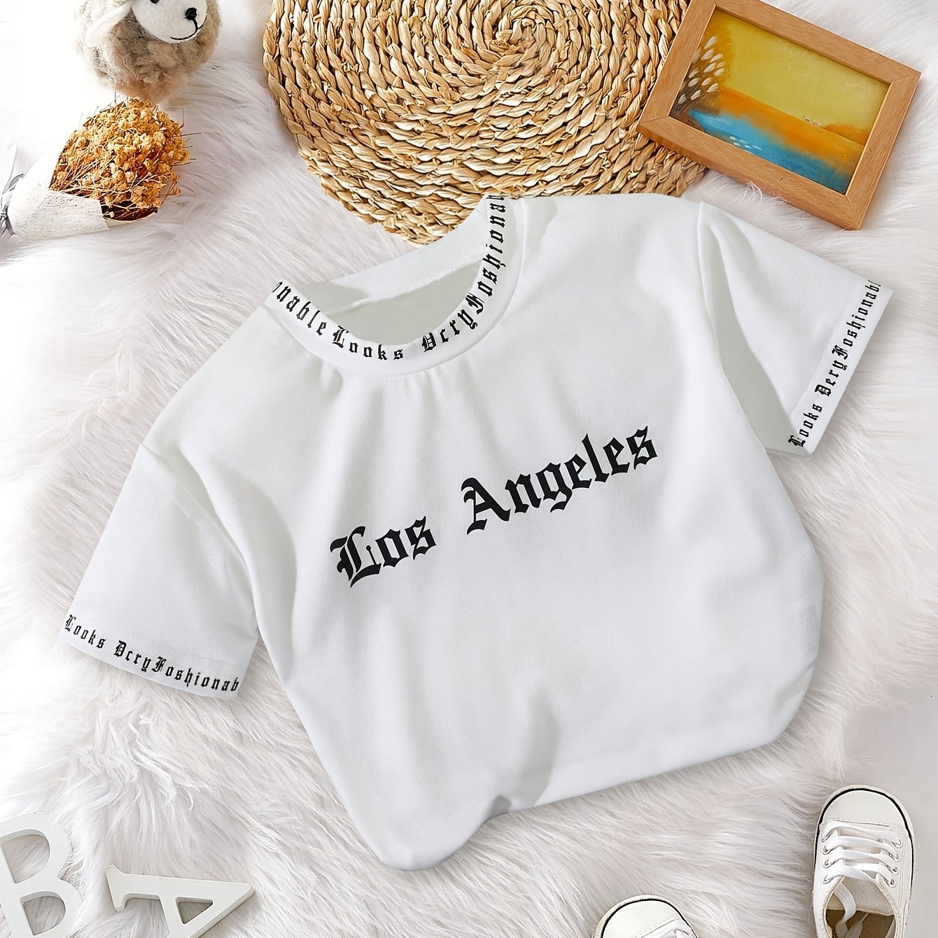 TEMU Youth Boy Letter Print Round Neck Short Sleev...