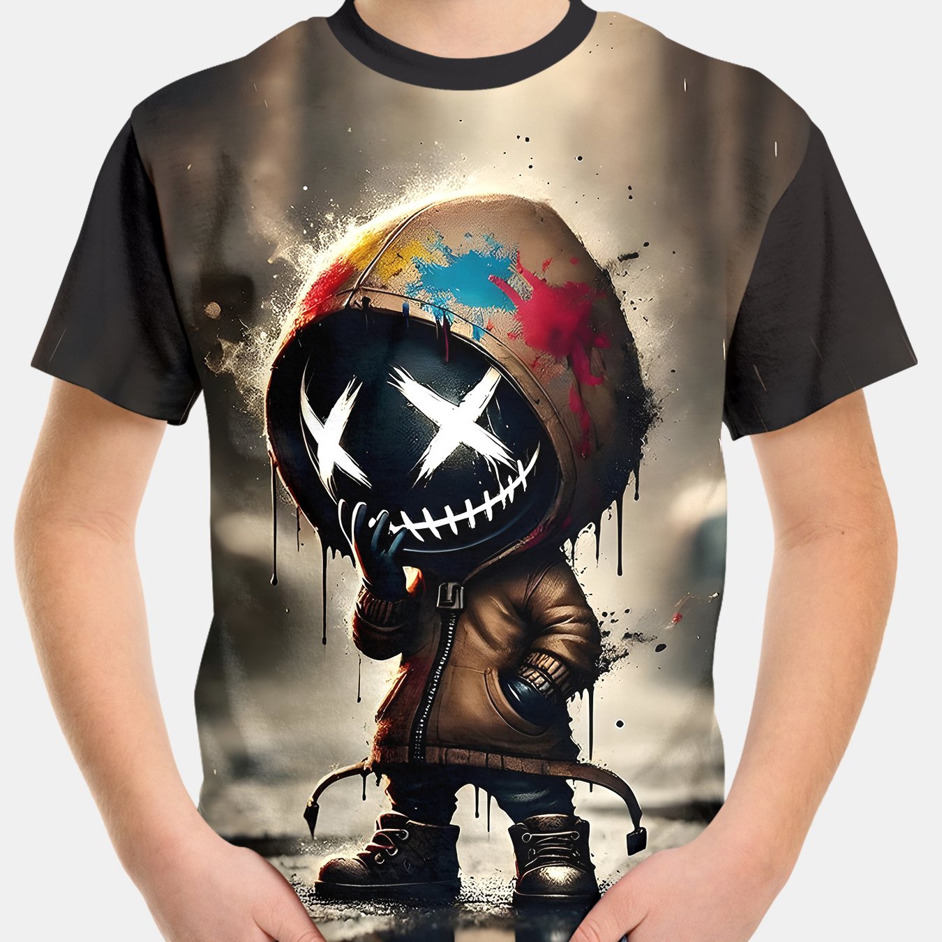 TEMU Boys' Graffiti Masked Character T-shirt - Vib...