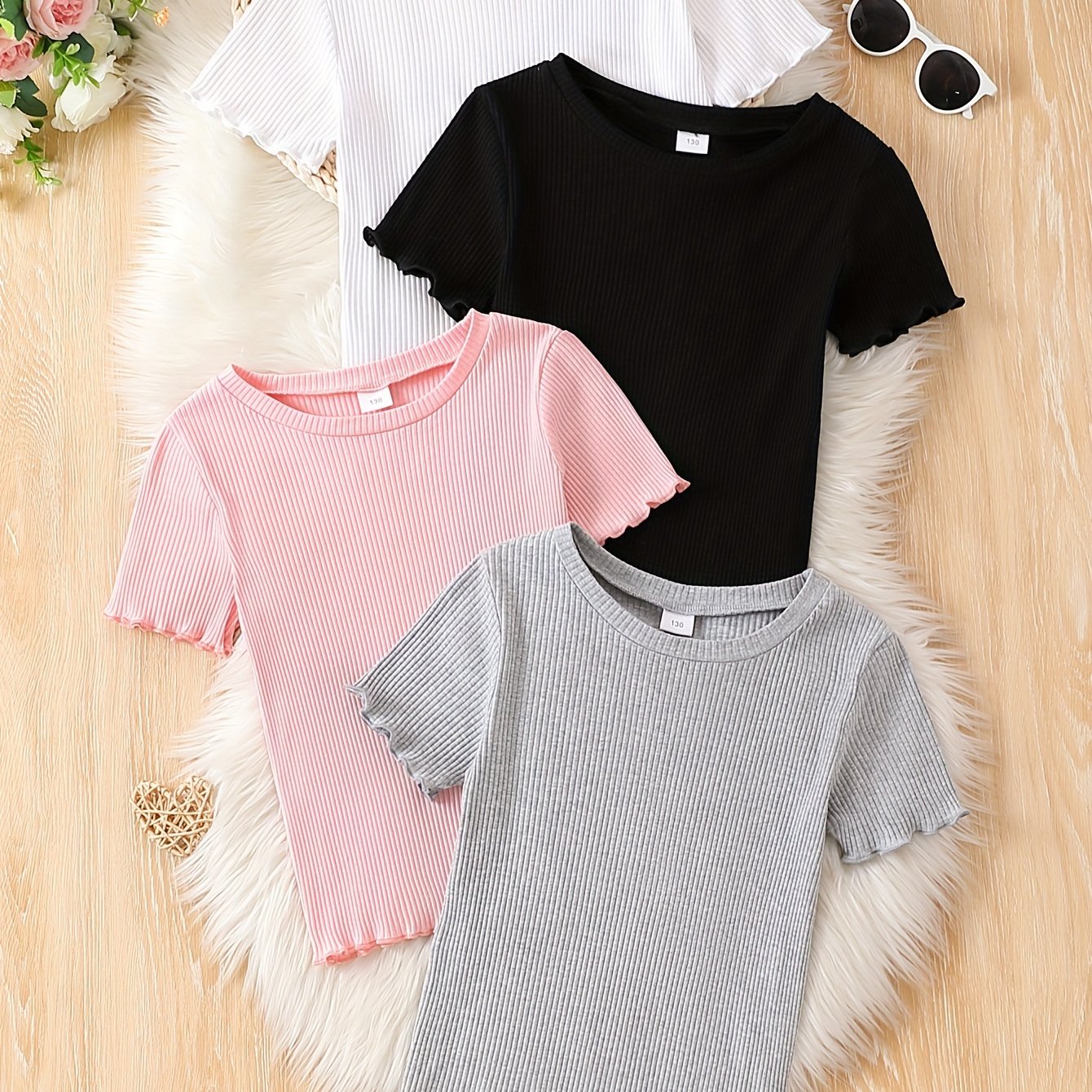 TEMU Girls' Cotton T-shirt 4pcs Set, Youth Summer ...