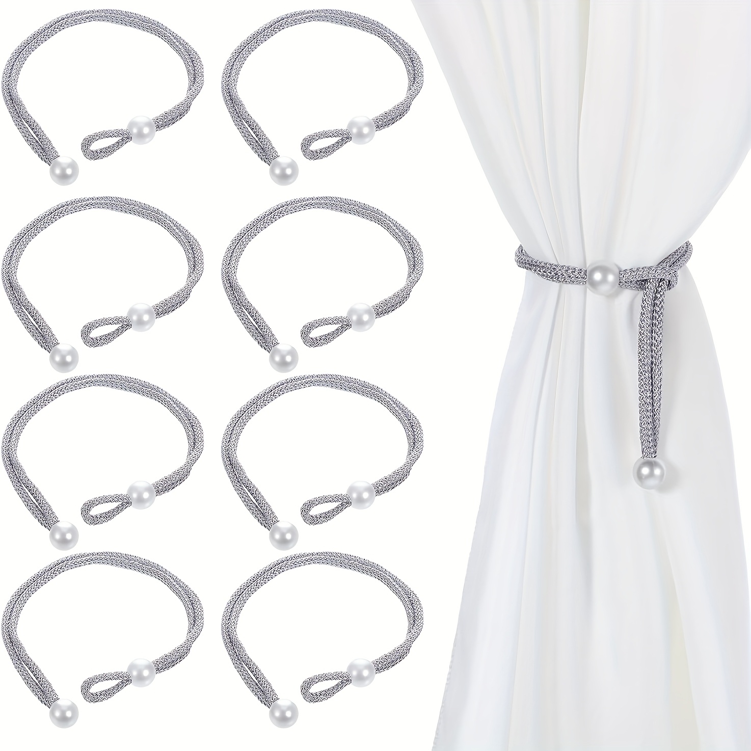 TEMU 8pcs Adjustable Grey Rope Curtain Tiebacks Wi...
