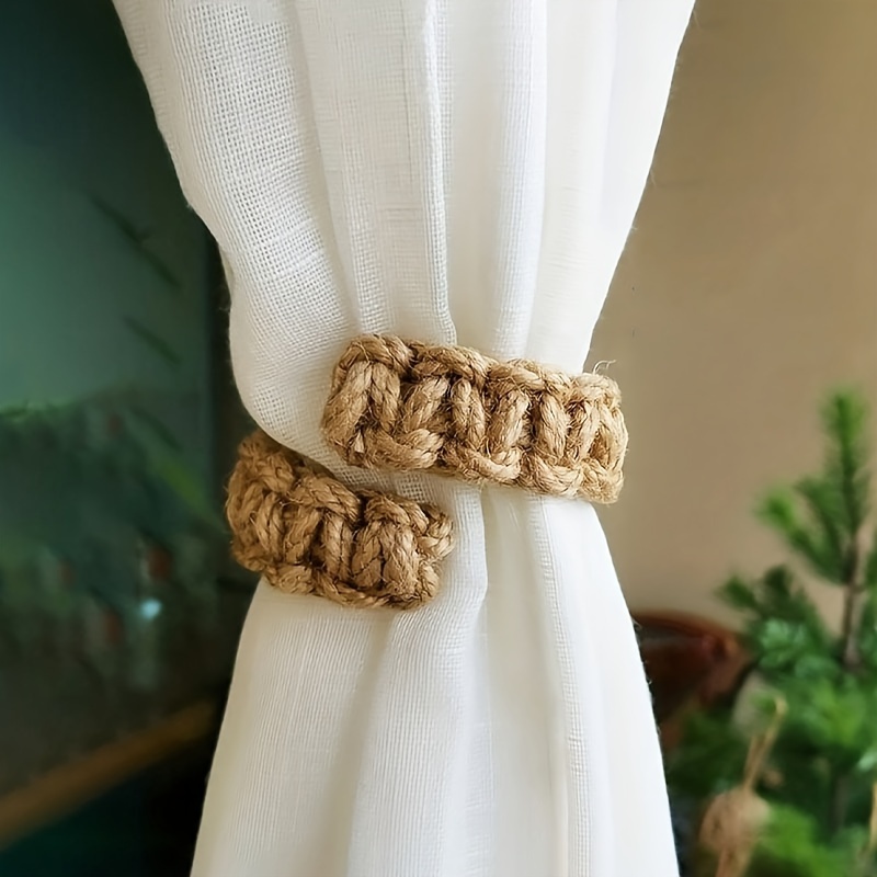 TEMU 2pcs Boho Style Curtain Tiebacks, Rustic Soli...