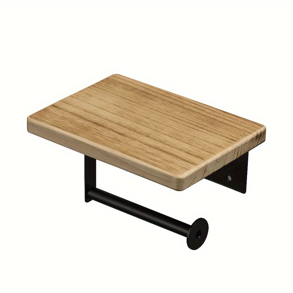TEMU 木製トイレットペーパーホルダー 棚付き - 粘着式壁掛け、穴あけ不要、多サイズロール対応、...