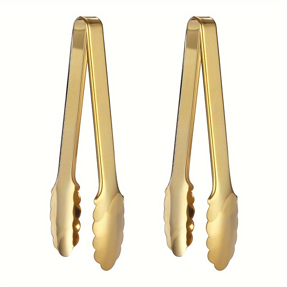 TEMU Set Of 6 Golden Stainless Steel Tongs, 9 Inch...
