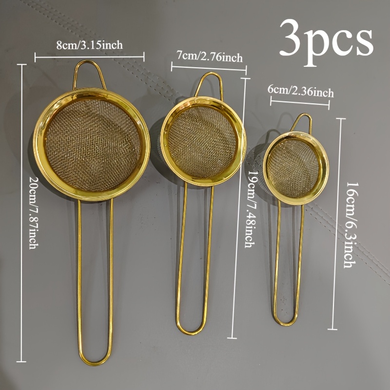 TEMU 3pcs Golden Stainless Steel Fine Mesh Straine...