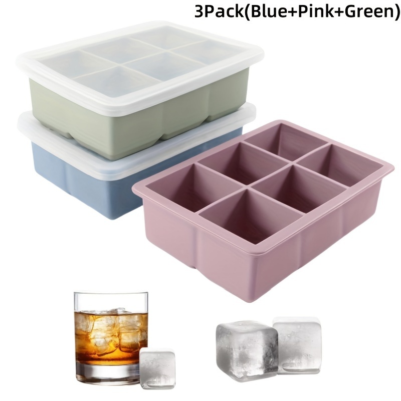 TEMU 3-pack Silicone Ice Trays Set With Lids - Lar...