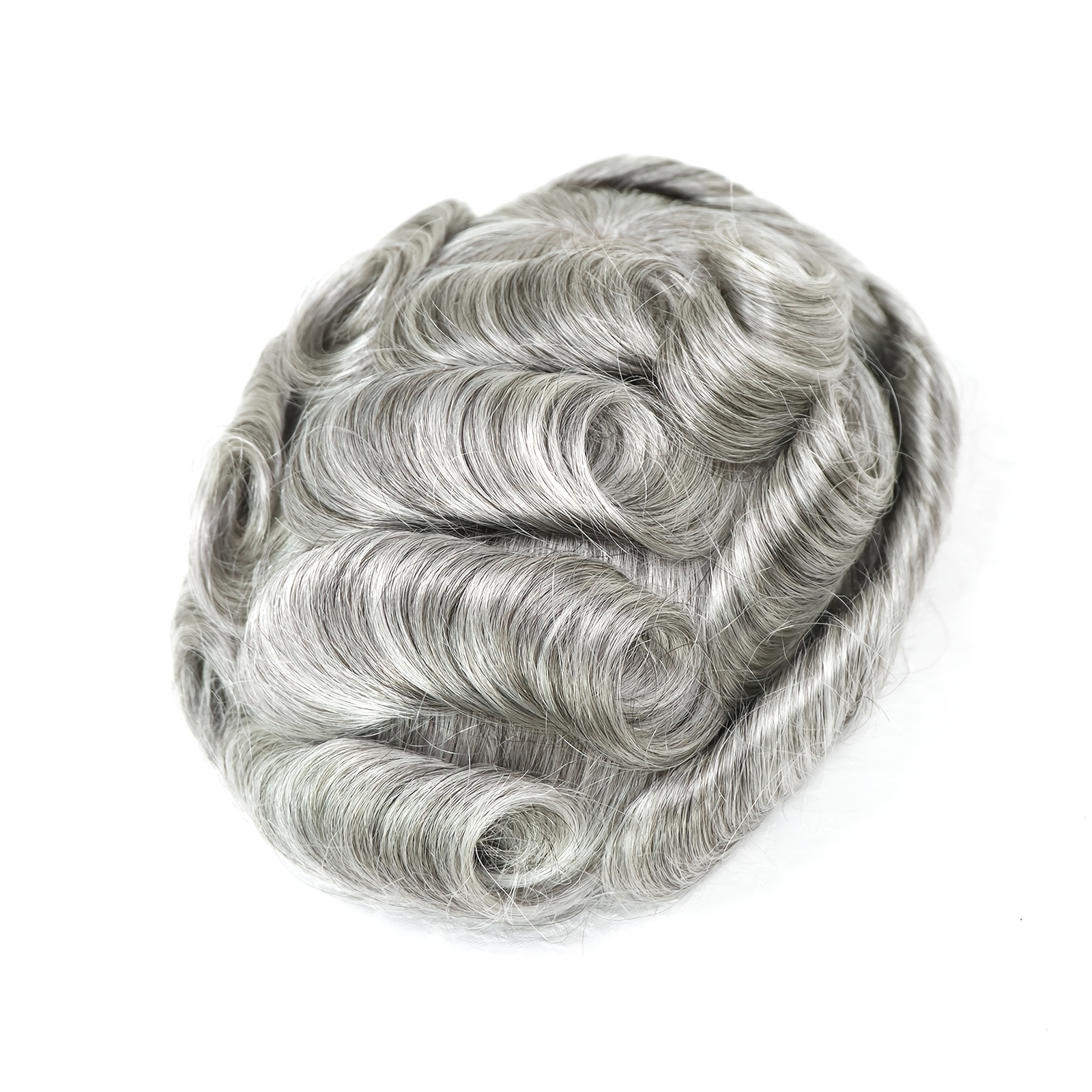 TEMU Men's Human Hair Toupee, 30mm Curly Wave, Ful...