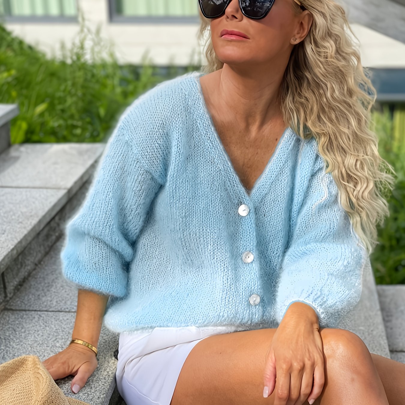 TEMU Women's Bohemian Lace- V-neck Sweater - Elega...