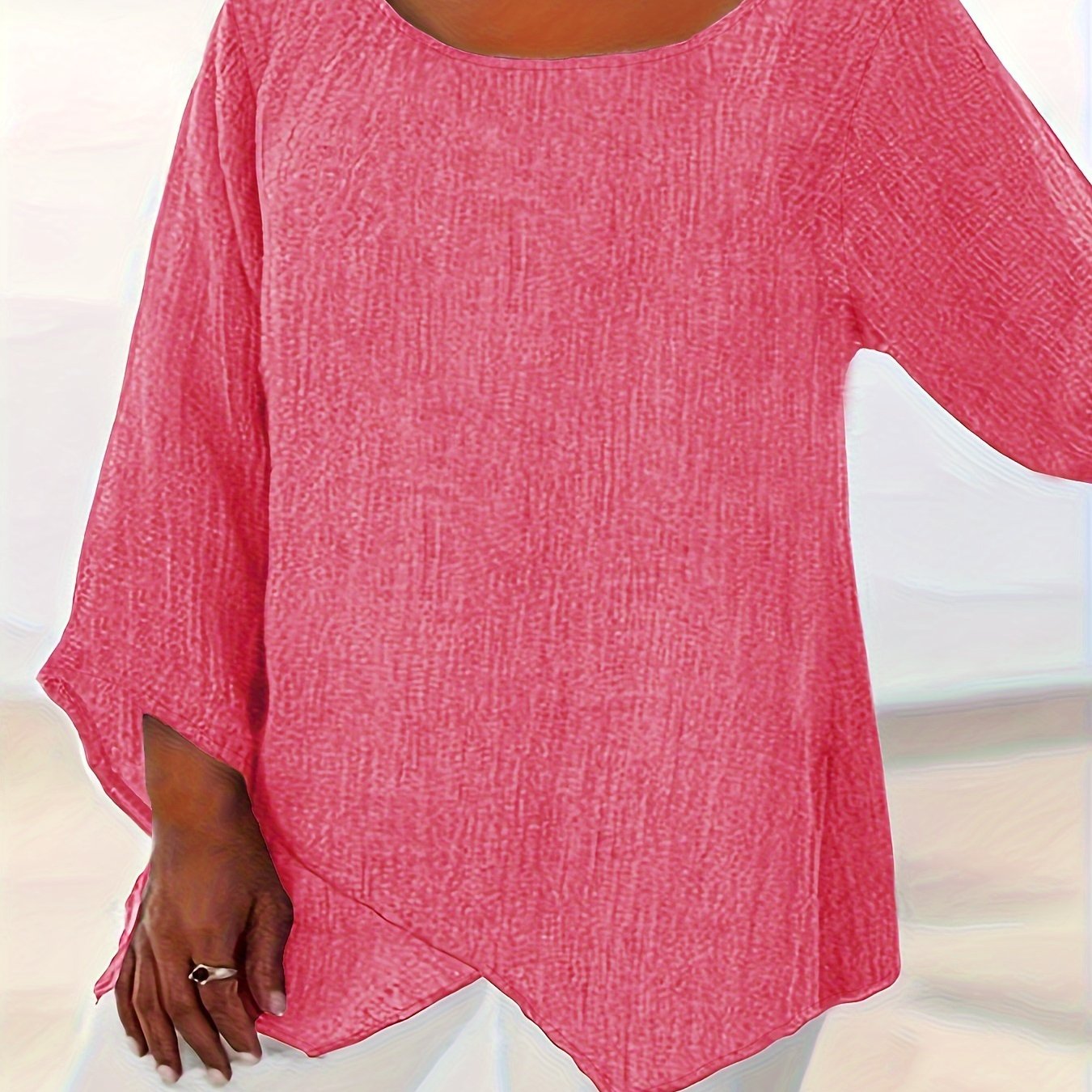 TEMU Plus Size Women's Casual 3/4 Sleeve Round Nec...