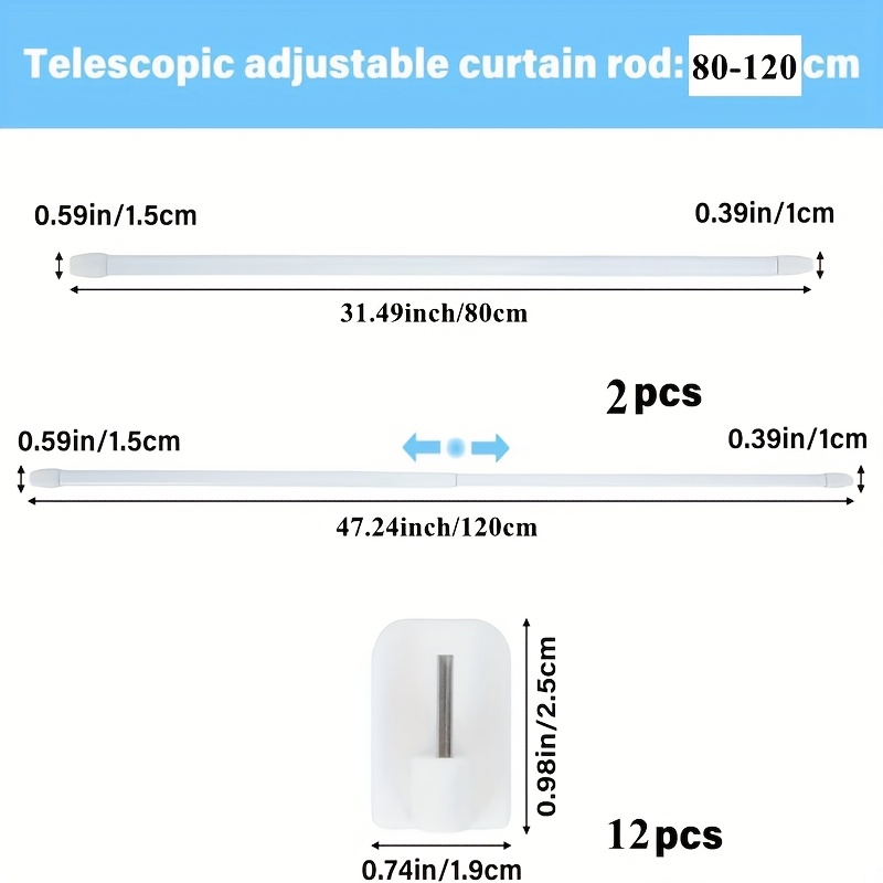 TEMU Pack Of 2 Extendable Curtain Rods, No Drill R...