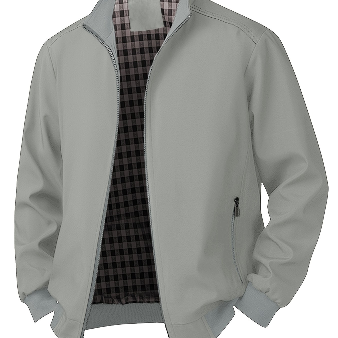 TEMU Men's Casual Zip-up Jacket With Checkered Col...