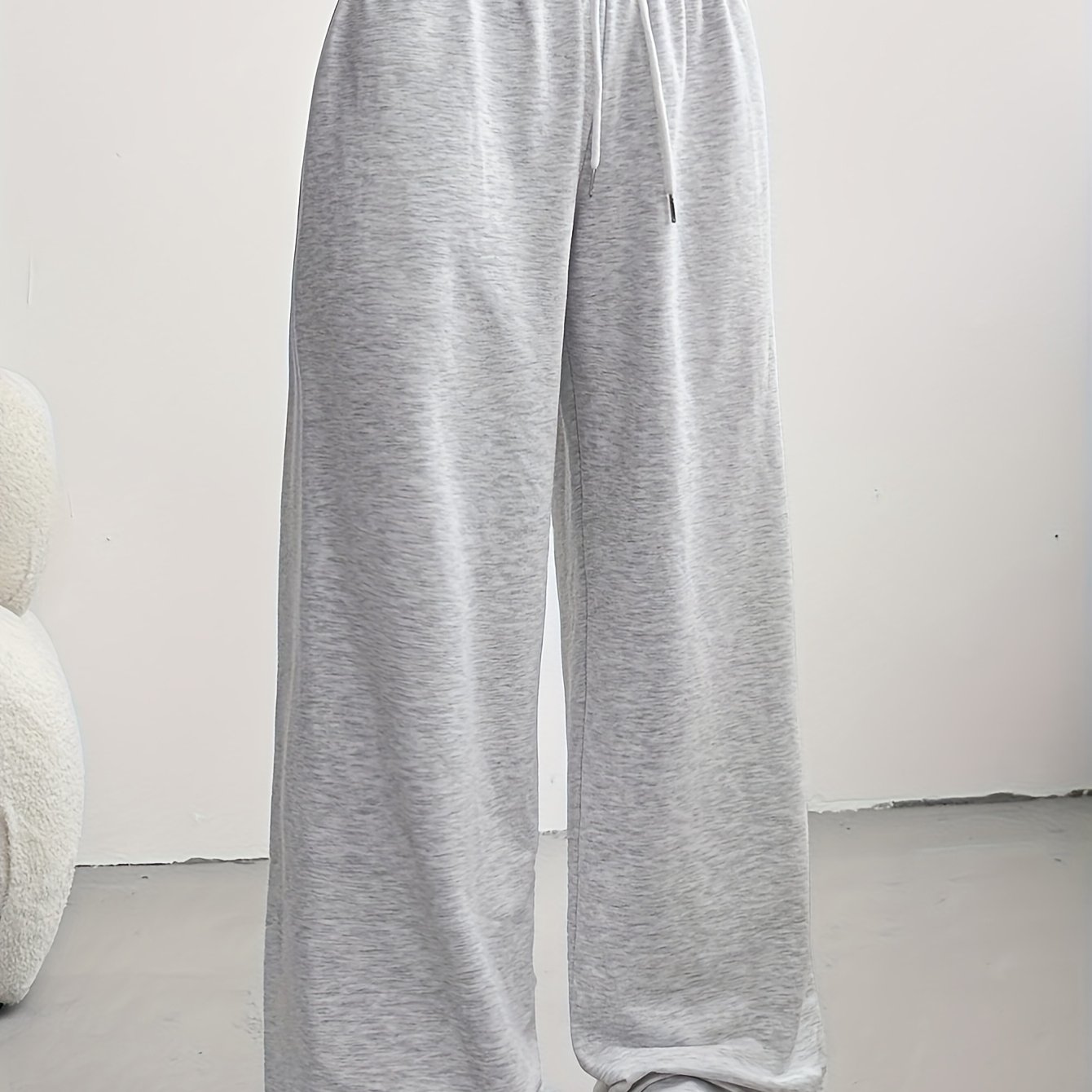 TEMU Women's Casual Wide-leg Joggers - Gray Drawst...