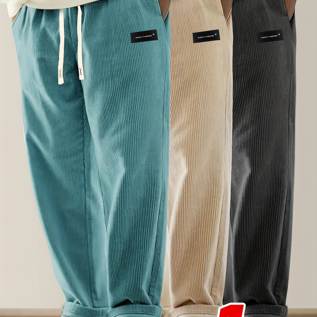 TEMU Men's Corduroy Casual Pants With Drawstring W...