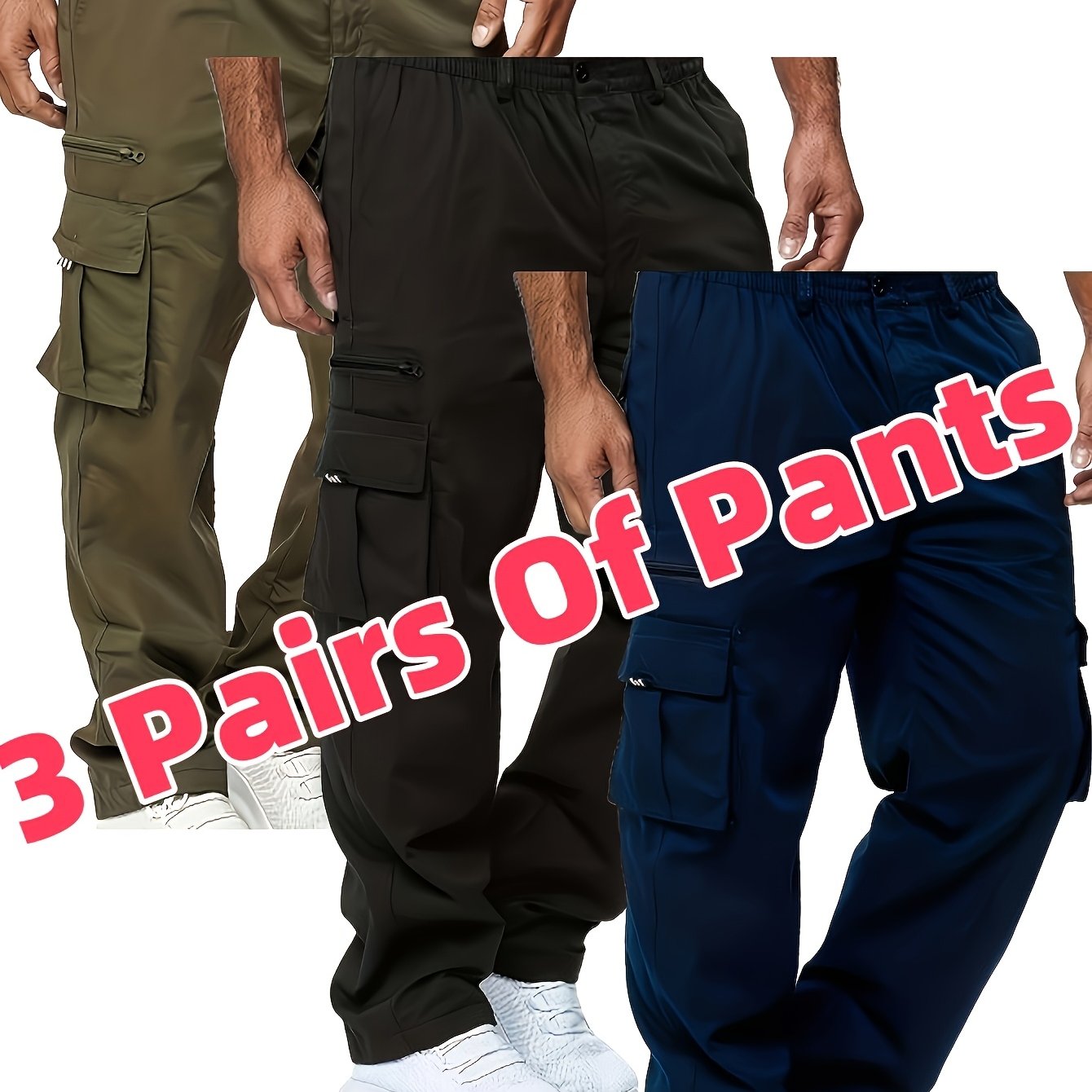 TEMU Men's Casual Cargo Pants - Straight Leg, Poly...