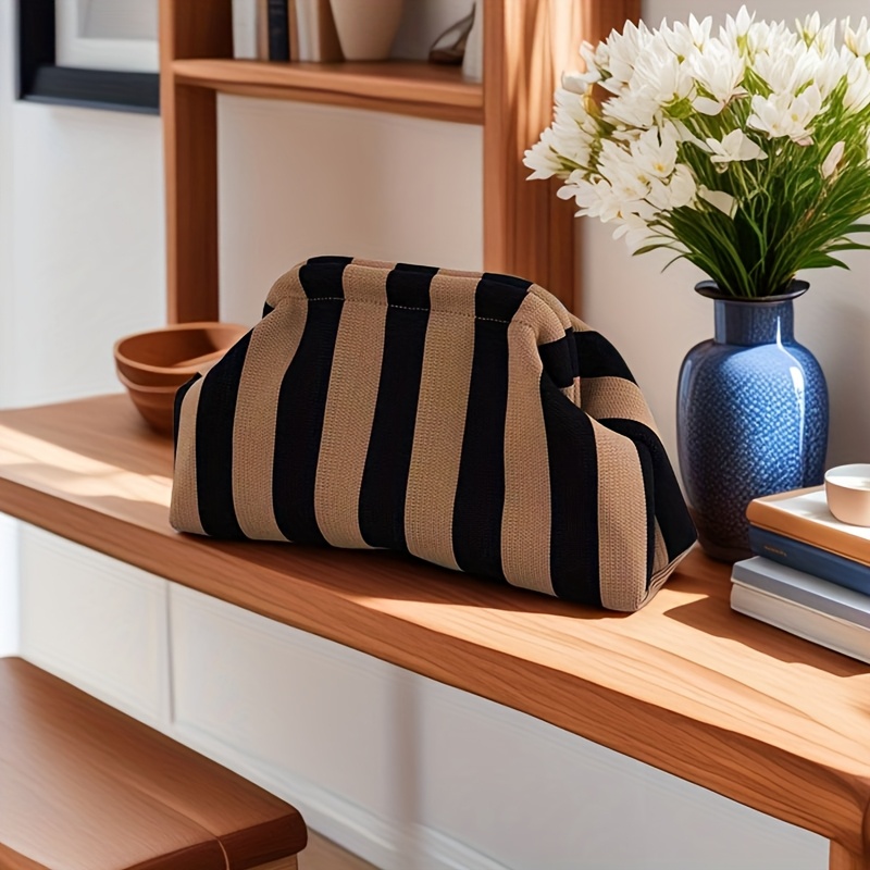TEMU Stylish Striped Travel Tote Bag With Snap Clo...