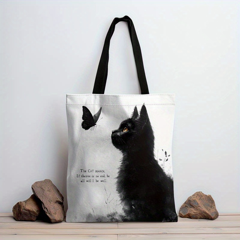 TEMU Large Canvas Tote Bag With Cat And - "everyth...