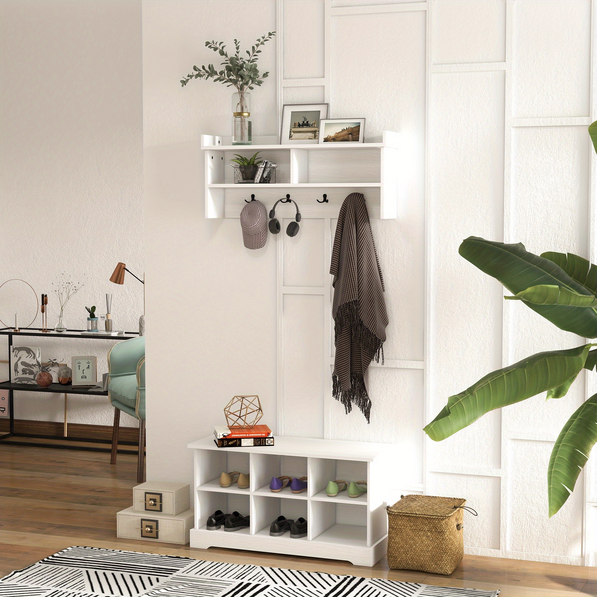 TEMU Homcom Coat Rack Shoe Bench Set, Entryway Sho...