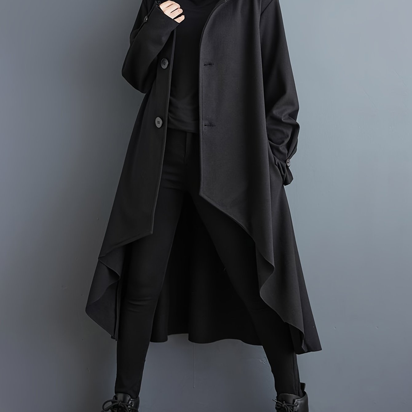 TEMU ボタンフロントスタンドカラールーズコート、カジュアルな無地の長袖長ラインコート、春秋用、女...