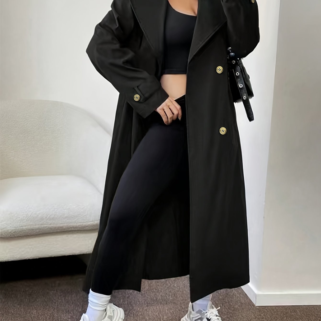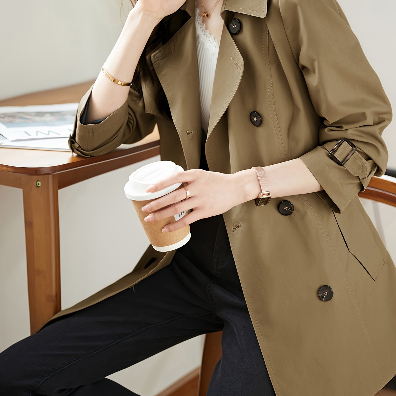 TEMU Women's Casual Solid Color Trench Coat, Polye...