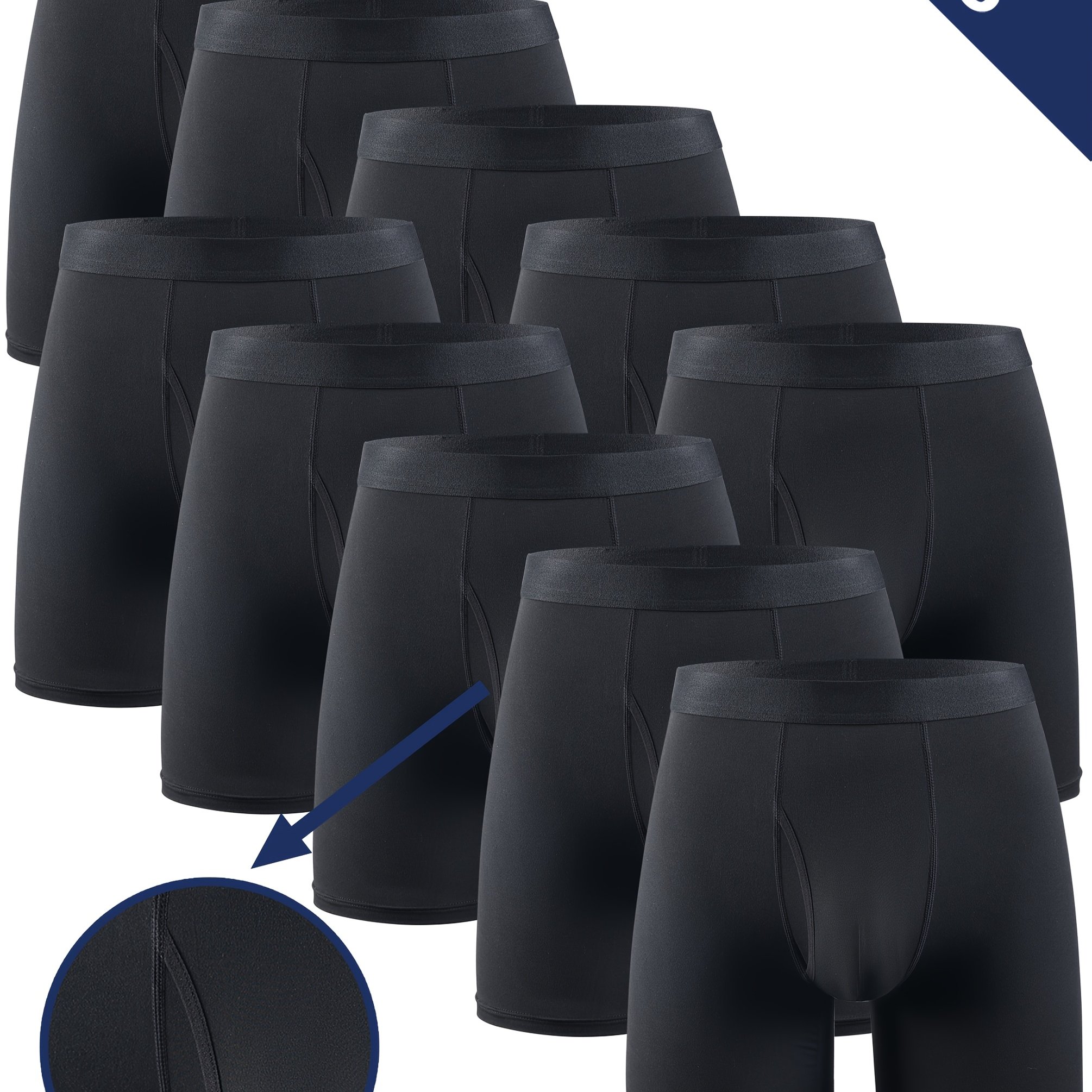 TEMU 10pcs Men's Long Boxer Briefs - Breathable, L...