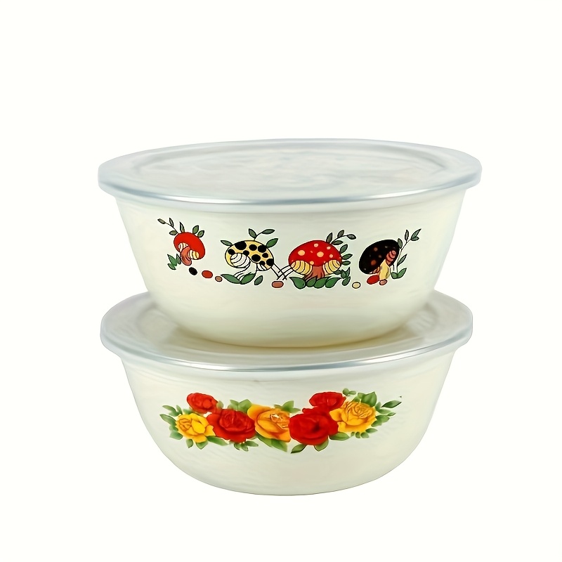 TEMU 2pcs Enamel Large-capacity Bowl With Lid, Ret...