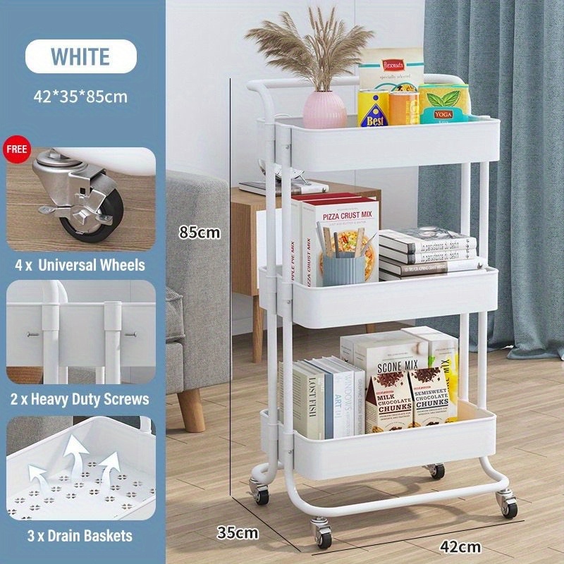 TEMU All Metal Trolley Cart Organizer Shelf With W...