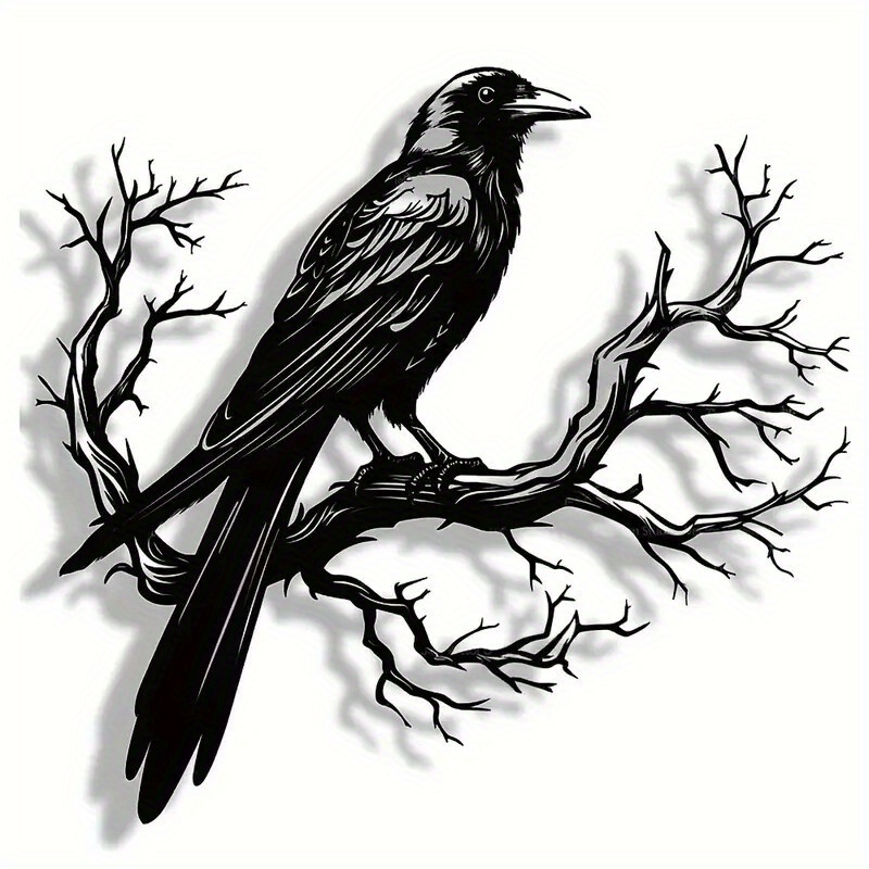 TEMU Metallwandkunst mit auf Ast, 1-teilige schwar...