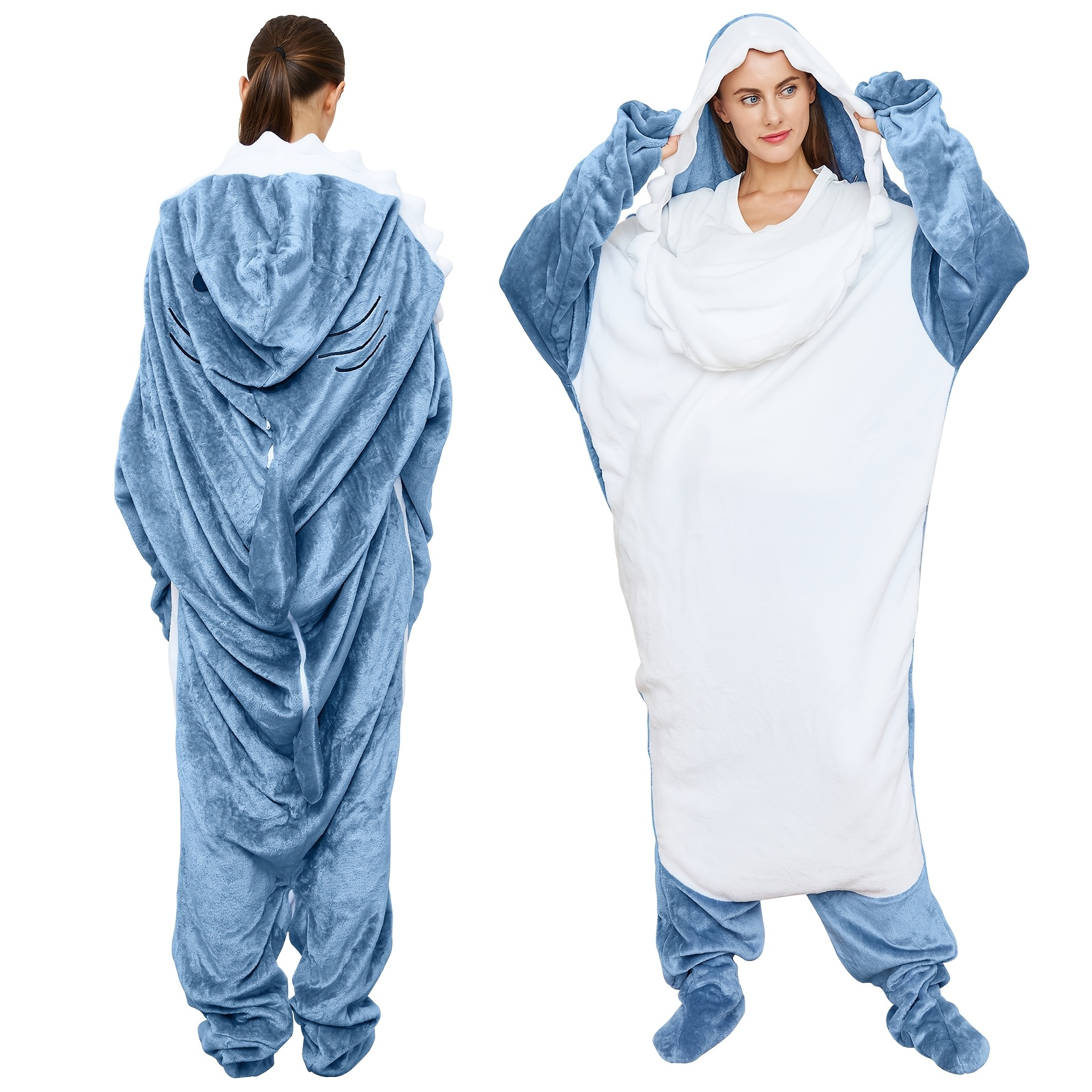 TEMU Shark Blanket Onesie Shark Hoodie Cozy Flanne...